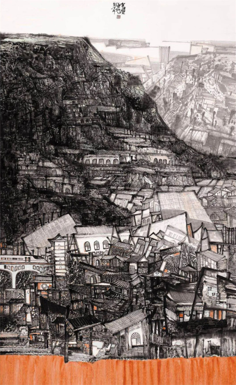 既有传统笔墨的素养,又具有浓郁的现代气息,这种气息来自画家对于生命的持续思考,对于灵性境界不断体悟,洪祥对山水创作很自信,在画面上能自作主张,别开生面。