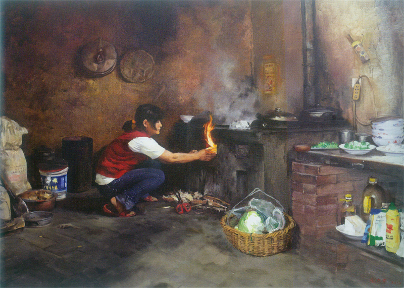 《农家厨房》100×136cm 入选2013年全国油画作品展