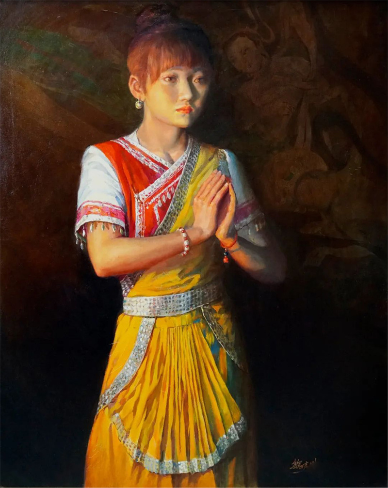《晨曦》100×130cm 1998年创作 1999年入选全国第八届“群星奖”美展,并获天津市参评全国第八届美术作品展览最佳作品奖