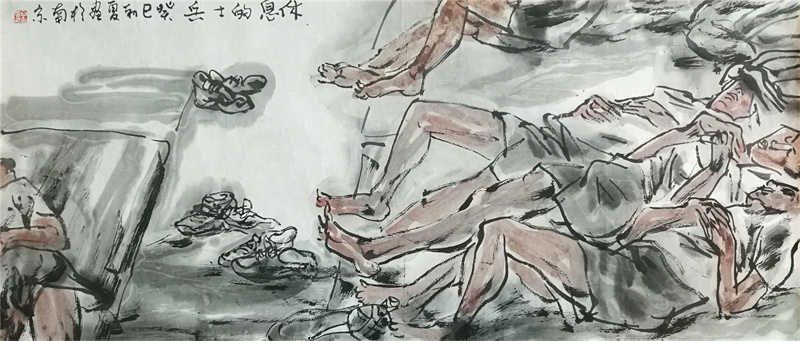 2013年,《十月井岗》《高地上的午餐》《两把菜刀闹革命》入选纪念毛泽东同志诞辰120周年南京军区美术书法作品展。(南京博物院)