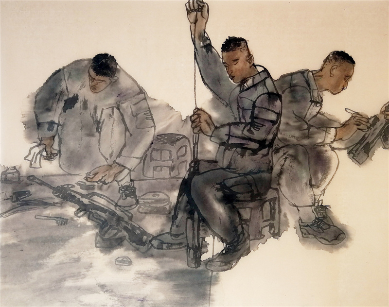 2014年,《连队哪些事》入选中国梦强军梦全军美术作品展。(中国美术馆)