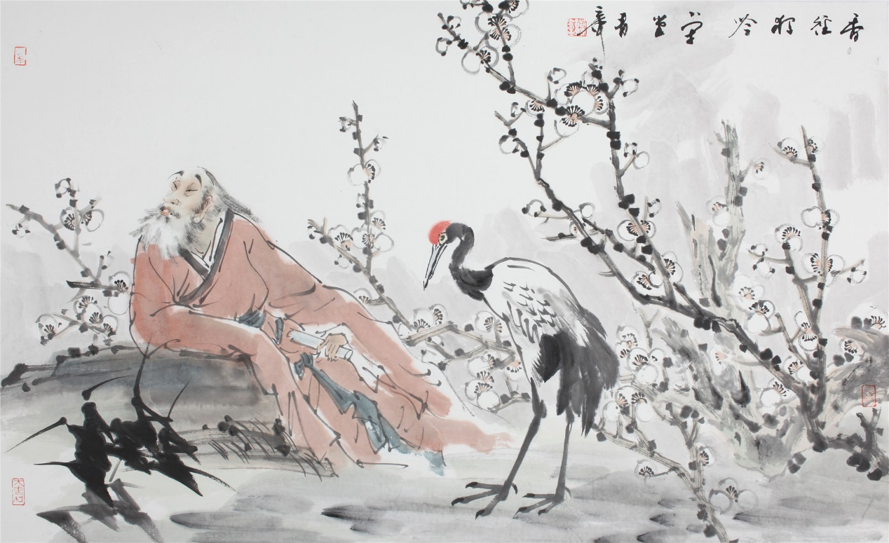 偏居一隅的甘肃民勤,虽然自然环境恶劣,生活条件艰苦,但几千年的沙井文化一脉相承,孕育和诞生艺术家几率的可能性则更大,成就其生长发育的土壤更肥沃。于是一个个令社会认可,圈内人士看好的画家从家乡的窝窠起飞,在各自适宜的地域里,冠着民勤人的徽标各领风骚、大显身手。粗粝的风沙砥砺出民勤人坚强不屈的意志;浓厚的文化气息浸泡出民勤人不俗的气质;深厚的艺术积淀陶冶出民勤人非凡的创作灵感。赵青章和杨华夫妇就是在这块土壤上成长起来的艺术家。他们追求生活的简单化、性情的随意化。或妇唱夫随,或夫唱妇随,没有地位和权力的纷争。日子过得平淡而不平庸、清雅而不清贫、高尚而不高贵,共同的追求和喜好,奠定了夫妻相濡以沫的和谐基础。多年来他们相扶相携走遍了大江南北、长城内外,用双足尺量过雪原荒漠、山地丛林、清流溪谷、竹林苇荡,他们崇尚自然、敬畏自然,然后通过对自然认知体味自然的美学内蕴,用灵动的画笔,描绘出秀美丰满的艺术形象。他们的的画作,尽管题材、风格各不相同,但是人文情怀、文化精神、追求个性与艺术语言等方面却能够达到殊途同归的天然默契。赵先生书画兼工,创作的题材和内容宽厚深邃,人物、山水、花鸟、版画等都有涉猎。对笔墨的理解和掌握已经达到心手合一的境界,墨随笔意,意随心愿。人物、花鸟已经从最初的肖似趋向于神似。有时候寥寥数笔就能传达出画家的心理趋向和对象的深层文化元素。或浓或淡的墨色,表述的是山水的纹理皱褶。花木的阴阳交错、人物的表情姿态。在他的古装人物画中,能够品味出儒家追寻的仁智情怀。一棵虬曲的古柏,一个原石或者老根雕琢茶案,一个凝神远眺的夫子,一个煽火煮茶的童子,一盏飘逸清香的陶泥茶盅……那香气、那雅气便从千年的时光中穿越而来。杨华先生擅画荷花,也许是因为女性与生俱来的细腻精致,她的画通过特殊构图和对瘢痕肌理的深度渲染和镂刻,形成一种强烈的视觉冲击。用繁复的笔墨对荷叶和莲瓣进行细致入微的皴擦,以期达到形神兼备的艺术效果。站在她的画作前,我们能够分明的感觉到,清风徐来、荷香悠悠的气息。您尽可以展开想象的翅膀,神游在田田的荷花荡里,听鱼儿的唼喋、莲枝的颤抖以及如鼓的蛙声、天籁般清丽的情歌。杨华先生所画仕女,用略带抽象化的笔意,展现古代仕女的纤柔、温婉、谦逊、有礼,配以修竹、山石、芭蕉、鲜花、秀木以及中国式建筑。裙袂飘飘、容颜奕奕,或抚琴、或鼓筝,抑或是踏青春游、采花捕蝶,形态逼真,呼之欲出。她的画落笔大方,气势恢弘,刚柔相济,格调雄浑,开女性绘画大气磅礴、豪情激荡之风。艺术的道路,形同于一场跋山涉水的远旅,是一段锲而不舍的征程。有的人天赋很好,却做了瓣苞米的猴子;有的人不忘初心,辛勤耕耘,收获了快乐,也收获了成果。赵青章和杨华先生是后者。经过几十年时光的琢磨和风雨的侵蚀,岁月把该带走的虚荣和浮华都带走了,留下的就是具有中国艺术审美元素的沙蚀石——瘦、皱、透。