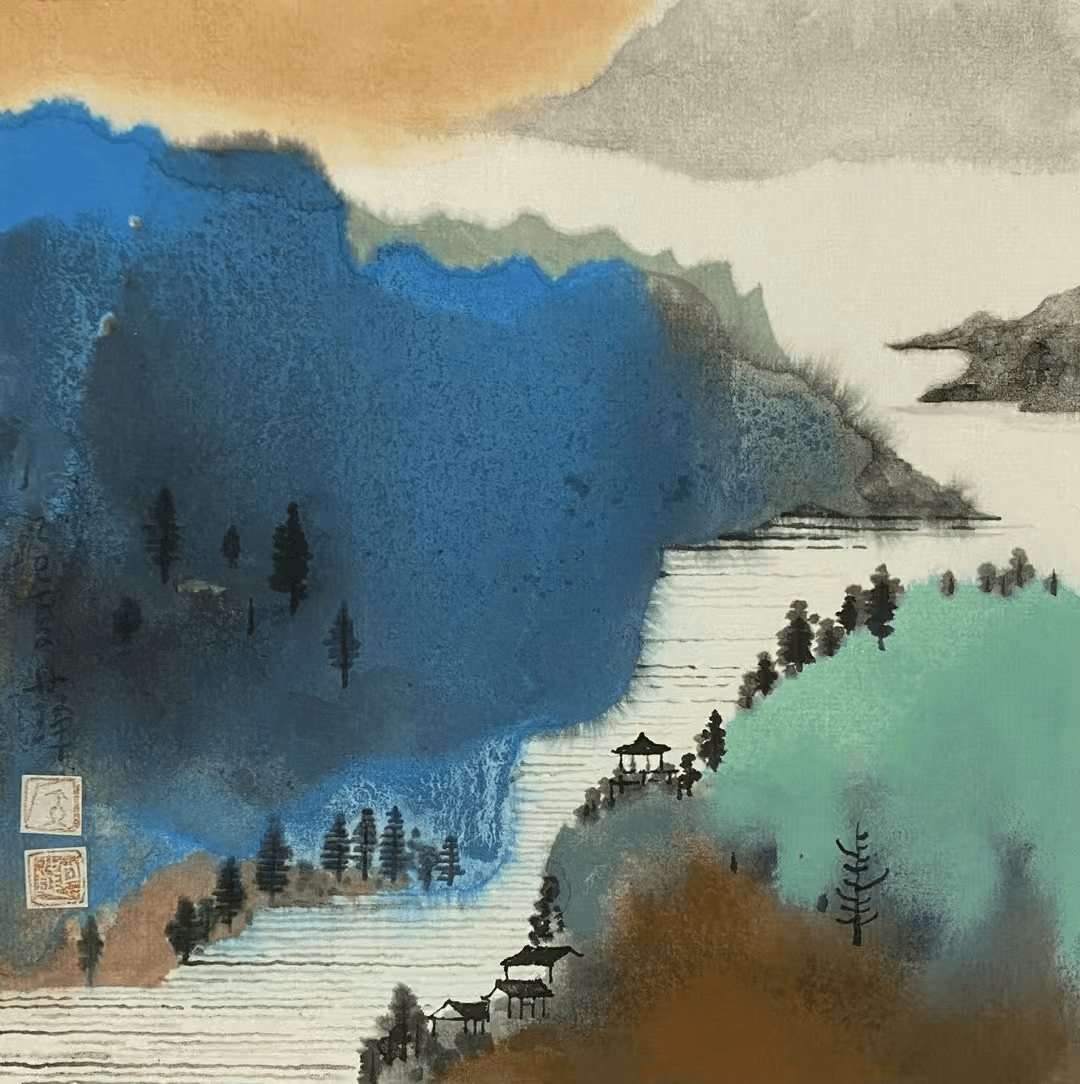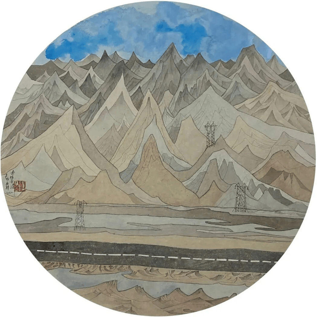 《冠山插汉》29cm×29cm 纸本设色 2022年
