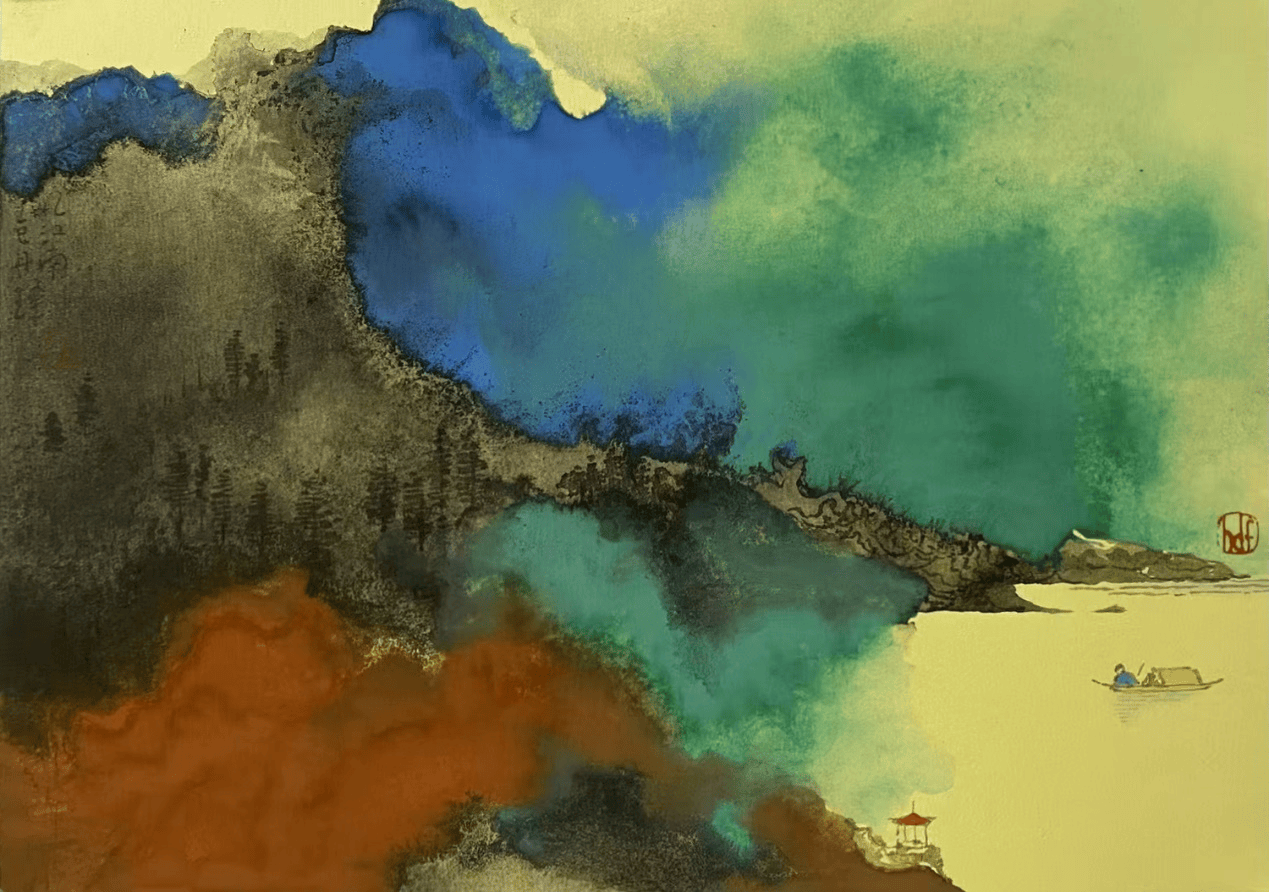 外粗旷而内秀,其画风多元;且工写兼修,工笔以点彩人物见长,画风细腻写实,构图奇特,画思即当代而具时代风标;写意以山水泼彩点染为法;大画见气象,小画见情趣。此与锋近十年间,深居简出,将所有精力凝聚于画之摸索,冬之火炉御寒,夏之池水凉身。大量阅读中西画论临摹古人经典,推敲墨法,笔耕不辍,佳作频出矣。