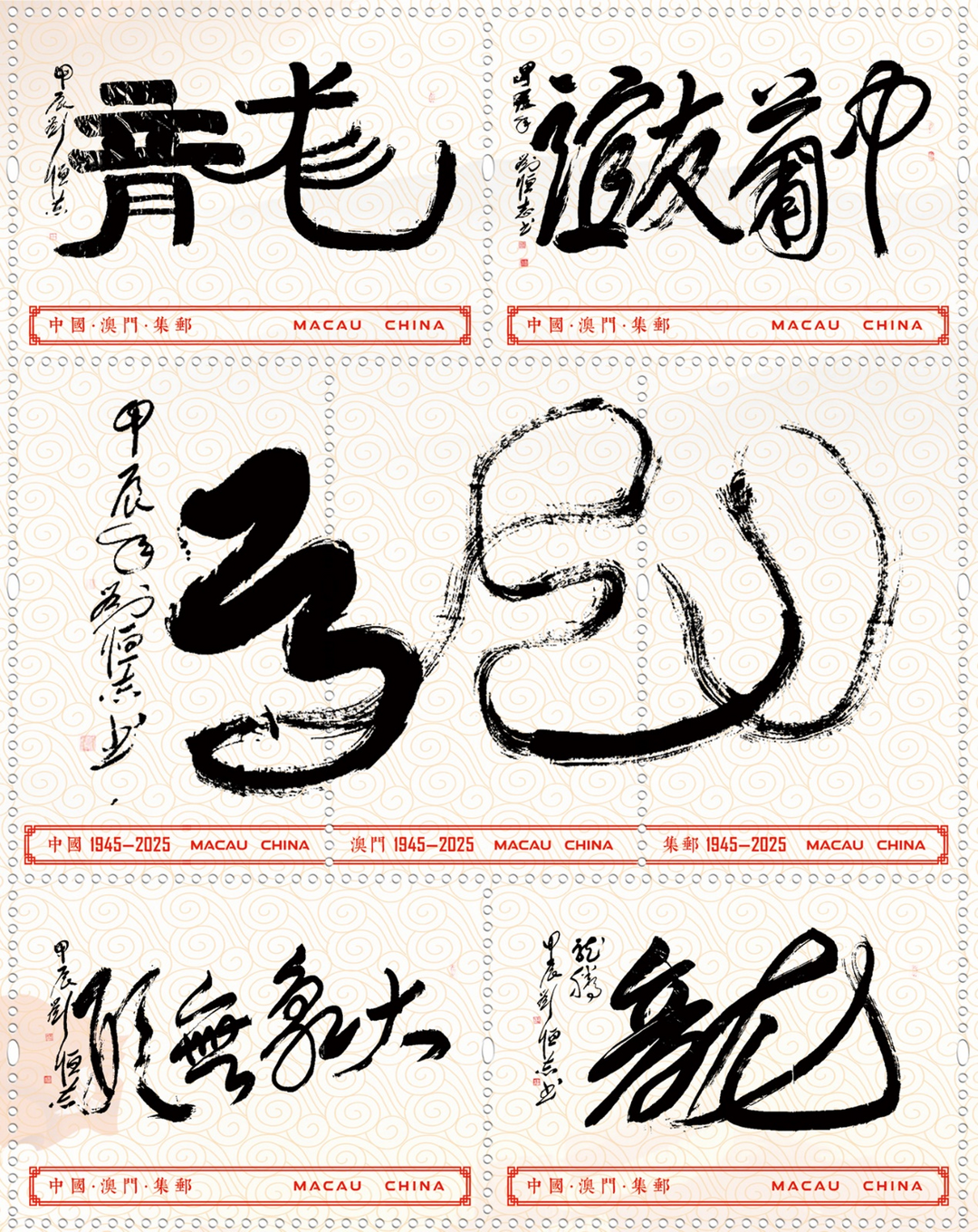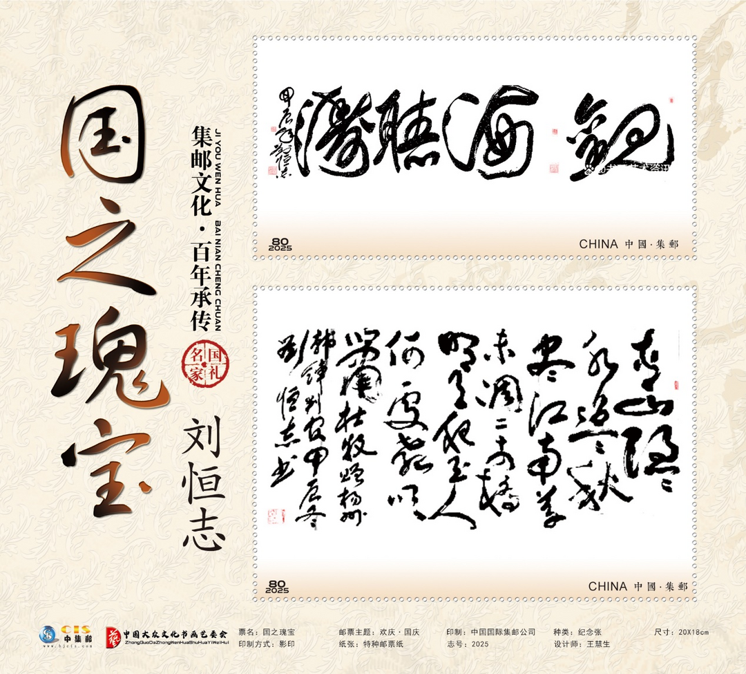 2025年分别发行:邮票上的中国传统文化《国礼艺术名家——刘恒志》邮票、《国之瑰宝》邮票、《联合国成立80周年》邮票、《巳巳如意》邮票。
