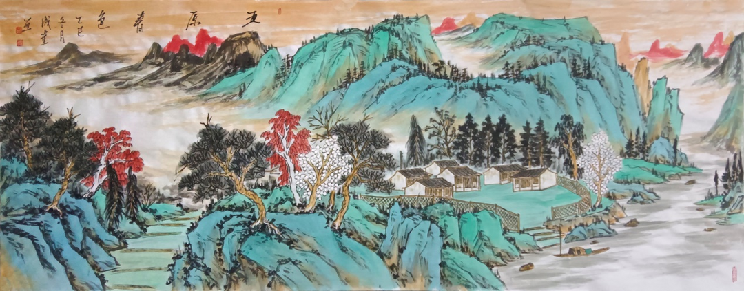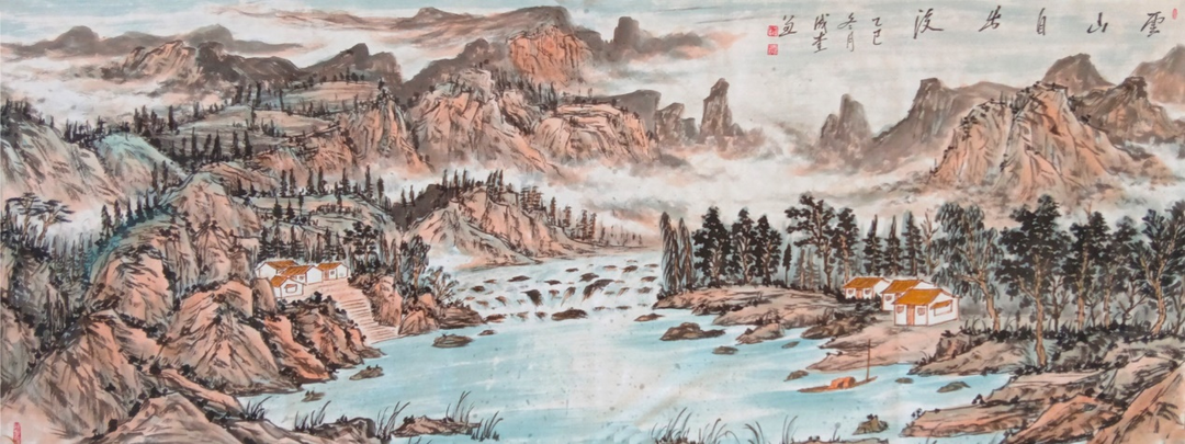 “画如其人”是对李成奎艺术最贴切的注解。他的作品中,质朴纯净的笔墨语言与温厚真挚的情感内涵,正是其人格品行的写照。作为长期致力于美育支教的爱心大使,以及中马艺术交流使者,李成奎将“文以载道”的文人传统与当代社会责任相结合,使画作兼具艺术价值与精神价值。他的山水不仅是视觉的审美对象,更是承载哲思与情怀的精神载体——《溪声天半闻》中,流水潺潺与山林静谧构成的意境,暗含“道法自然”的道家智慧;《故园情怀》以细腻的线描勾勒乡愁,传递出对故土的深情眷恋;《高塬春意浓》则以浓烈的色彩表现高原生机,彰显生命的蓬勃力量。