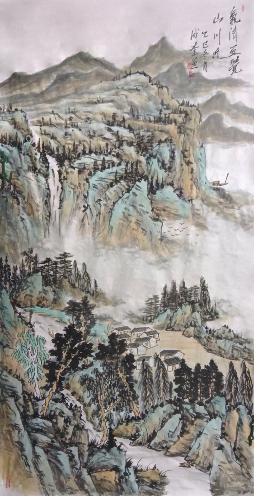 在中国当代山水画坛,李成奎以其兼具传统底蕴与时代精神的创作实践,走出了一条“师法自然、心系民生、笔墨出新”的艺术之路。这位字木子、号润禾斋主的皖北画家,集中国美术家协会会员、清华大学美术学院客座教授、一级美术师等多重身份于一身,其作品既延续了中国画“澄怀观道”的精神内核,又以鲜明的时代性重构了山水画的审美表达,成为当代文人画与现实关怀相融合的典型代表。