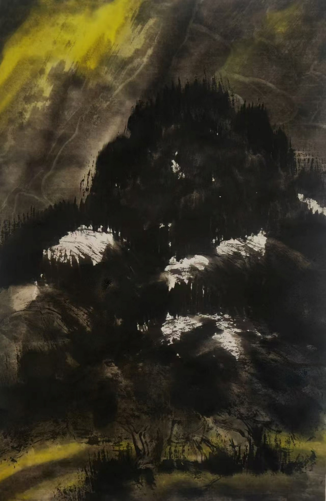 毫无疑问,艺术创造要从实在中升华。经由创作主体生命力的灌注而又扬弃了实在性的一个精神感性的创造物,实在变为艺术语汇,对客体只不过是借题发挥,意象语言魅力愈浓,实在性便愈要冲淡,唯有精神的超载和精神的升华,才能使自我本真进入艺术境界,去接近永恒、无限和自由天国,这时“物我两忘”,无一不是造化之所为,无一不是本体生命之广延,“有生命力的形式”便会如潮水般向你涌现。